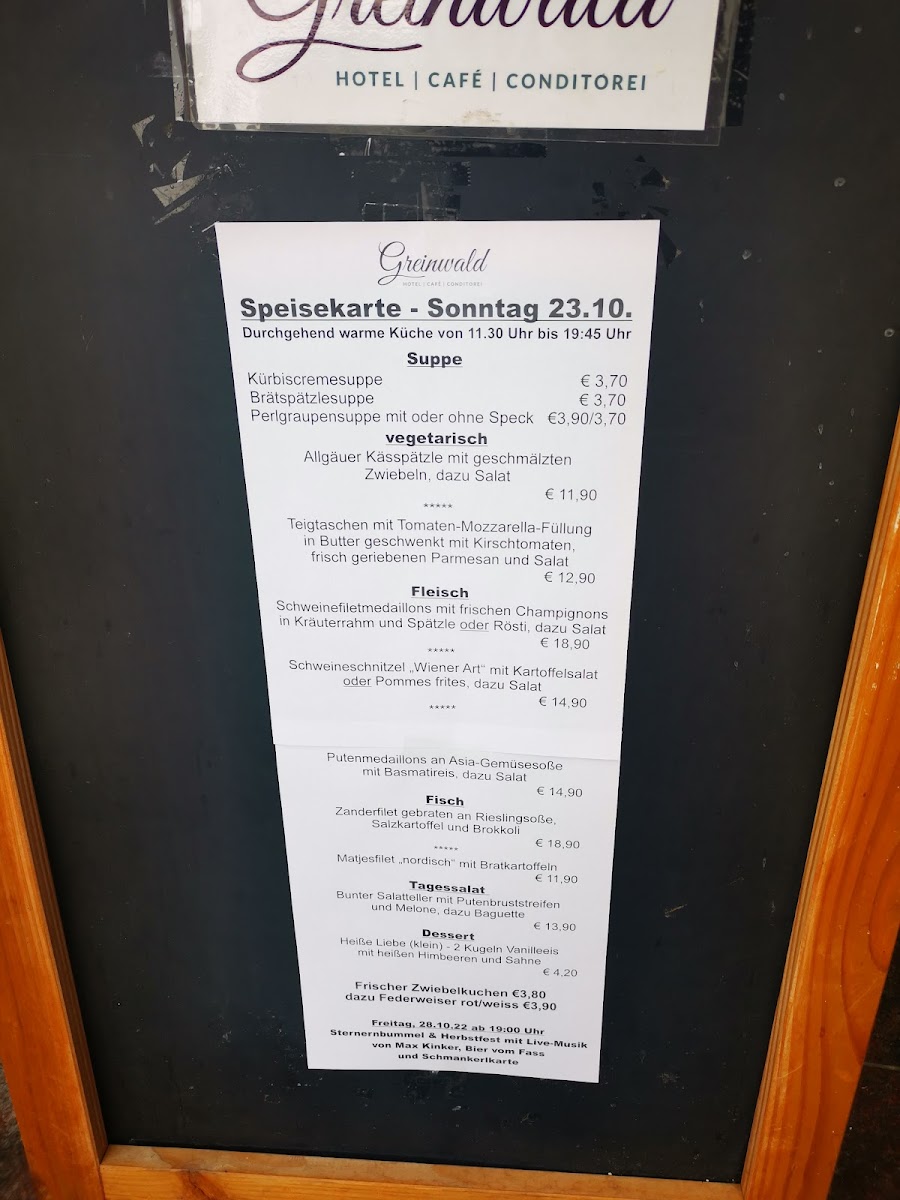 Welcome to Cafe-Hotel Greinwald, a charming destination nestled in the heart of Marktoberdorf. This versatile venue seamlessly merges the warmth of a family-run hotel with the delights of a café, offering a unique dining experience. The menu is a celebration of freshness and homemade goodness, ranging from hearty breakfasts to delectable pastries.